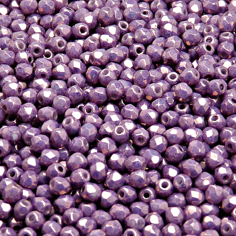 100ks České skleněné broušené ohňovky kulička 3mm bílá/ fialový vega listr