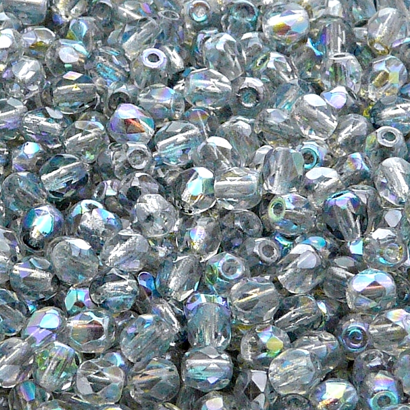 100ks České skleněné broušené ohňovky kulička 4mm čirá/ modrá duha