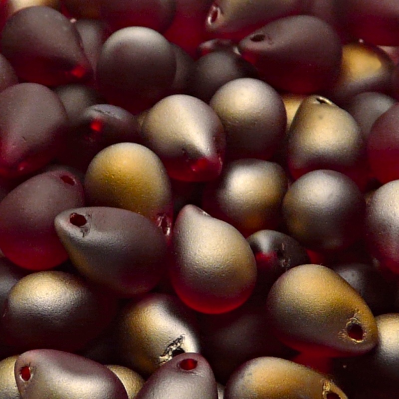 - 10ks České skleněné mačkané korálky kapky 10x14mm rubín/ valentinit polopokov mat