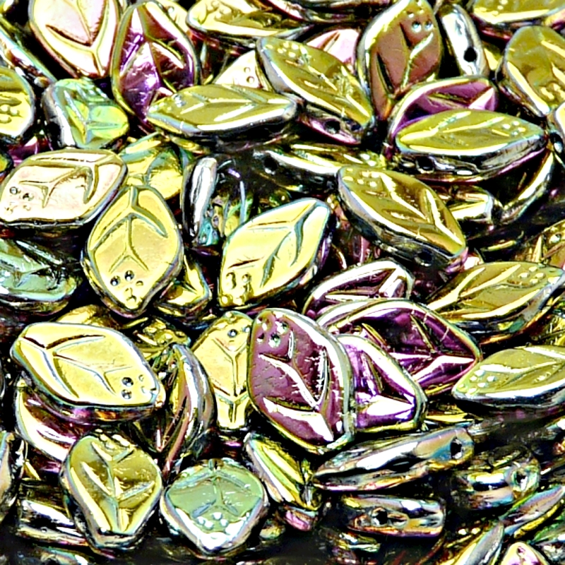 25ks České skleněné mačkané korálky lístečky 7x12mm černá/ vitrail celopokovSkladem 14 ks52 Kč/ ks42,98 Kč bez DPH