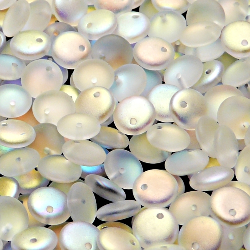 40ks České skleněné mačkané korálky čočka 8mm čirá/ AB polopokov matSkladem 17 ks54 Kč/ ks44,63 Kč bez DPH