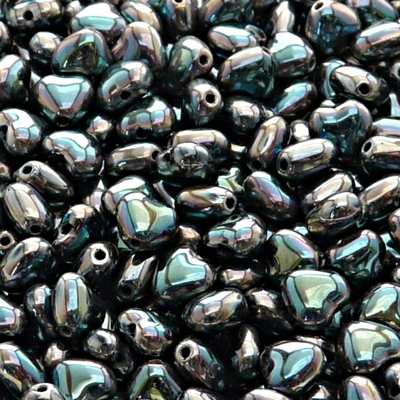 50ks České skleněné mačkané korálky srdíčko 6mm černá/ celsian celopokov